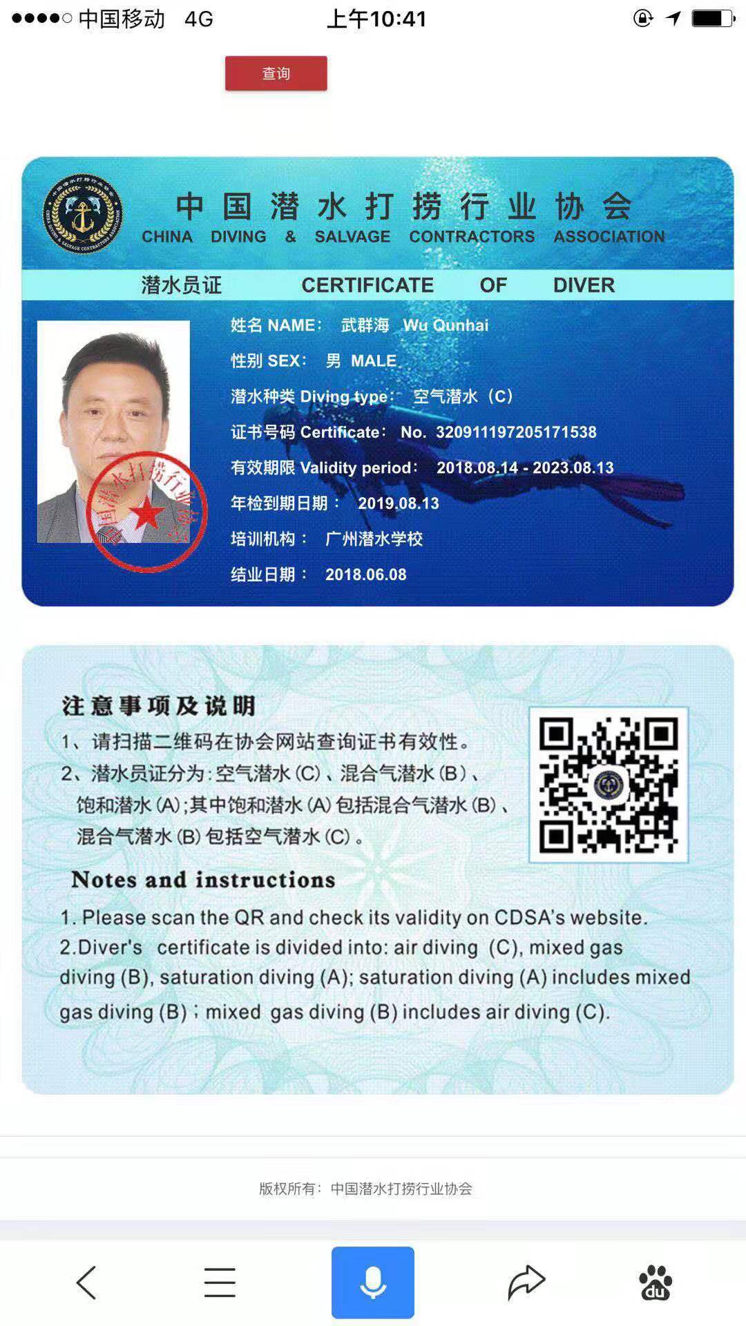 公司致力于江、河、湖、海、水庫等水下工程作業,具有良好的企業形象和強勁的技術優(yōu)勢,多次出色完成各類水下工程任務如:水下打撈,潛水作業,水下切割,水下拆除,水下焊接,水下安裝,沉井施工等......,與中交二航局、三航局,交通部大橋局,華能電廠、中鐵十七局等單位是長期合作伙伴,憑借過硬的技術,優(yōu)質、高效、安全的業績贏得了廣大客戶的好評。